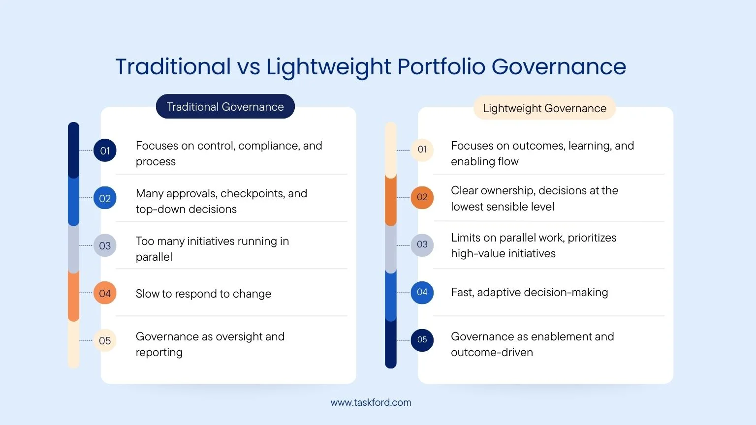 Quick Comparison: Traditional vs Lightweight Portfolio Governance