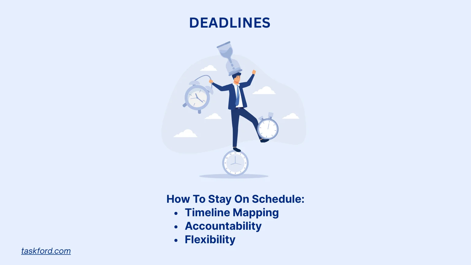 - Flexibility: Unexpected delays, like client feedback, happen. Add buffer time for critical tasks to keep projects on track.