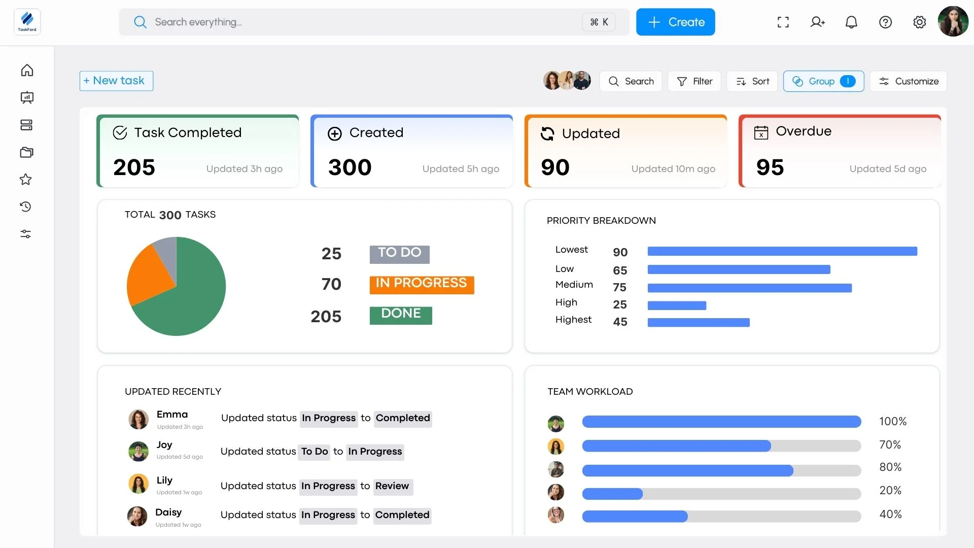 By bringing together project management, task management, resource planning, progress tracking, dashboards, OKRs, and templates, TaskFord replaces fragmented tools with a single source of truth. The result is less chaos, better alignment, and predictable delivery across projects and teams.