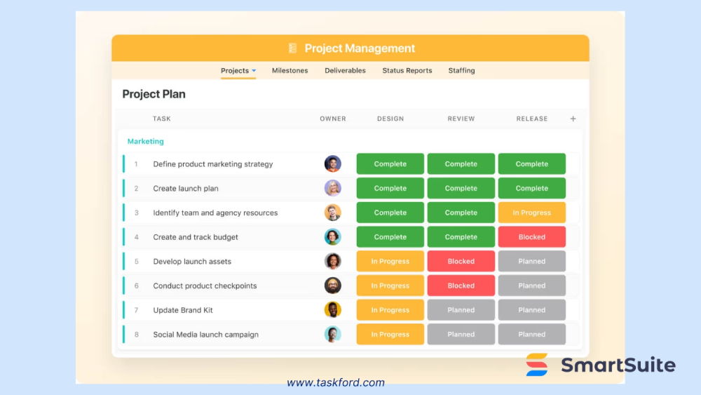 - Best For: Teams managing complex, cross-functional projects. A IT team might use SmartSuite to manage software rollouts, with custom dashboards tracking milestones and resource allocation across distributed team members.