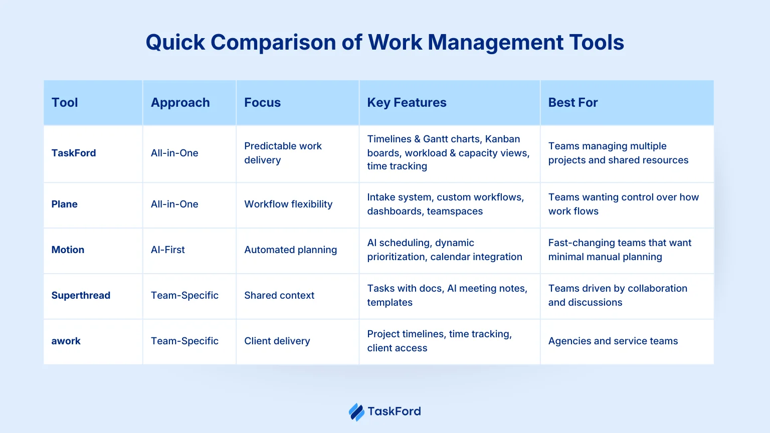 Most work management tools aim to solve the same problems, but they go about it in different ways. Each approach focuses on a different priority, such as visibility, speed, or fit. Understanding these differences helps teams avoid tools that look good at first but fall short in daily use.