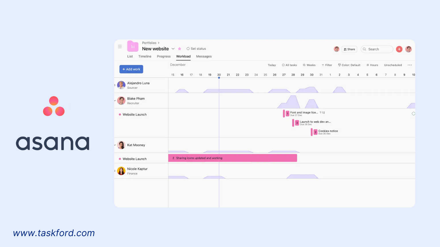 - Key Features: Workload view, timeline scheduling, task collaboration, and integrations.